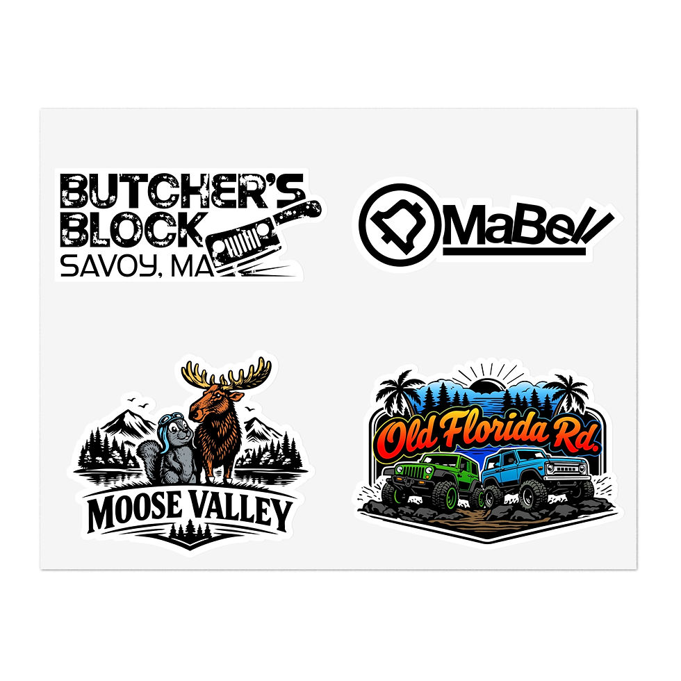 8.5" x 11" Sticker Sheet— Butcher's Block, MaBell, Moose Valley, Old Florida Rd